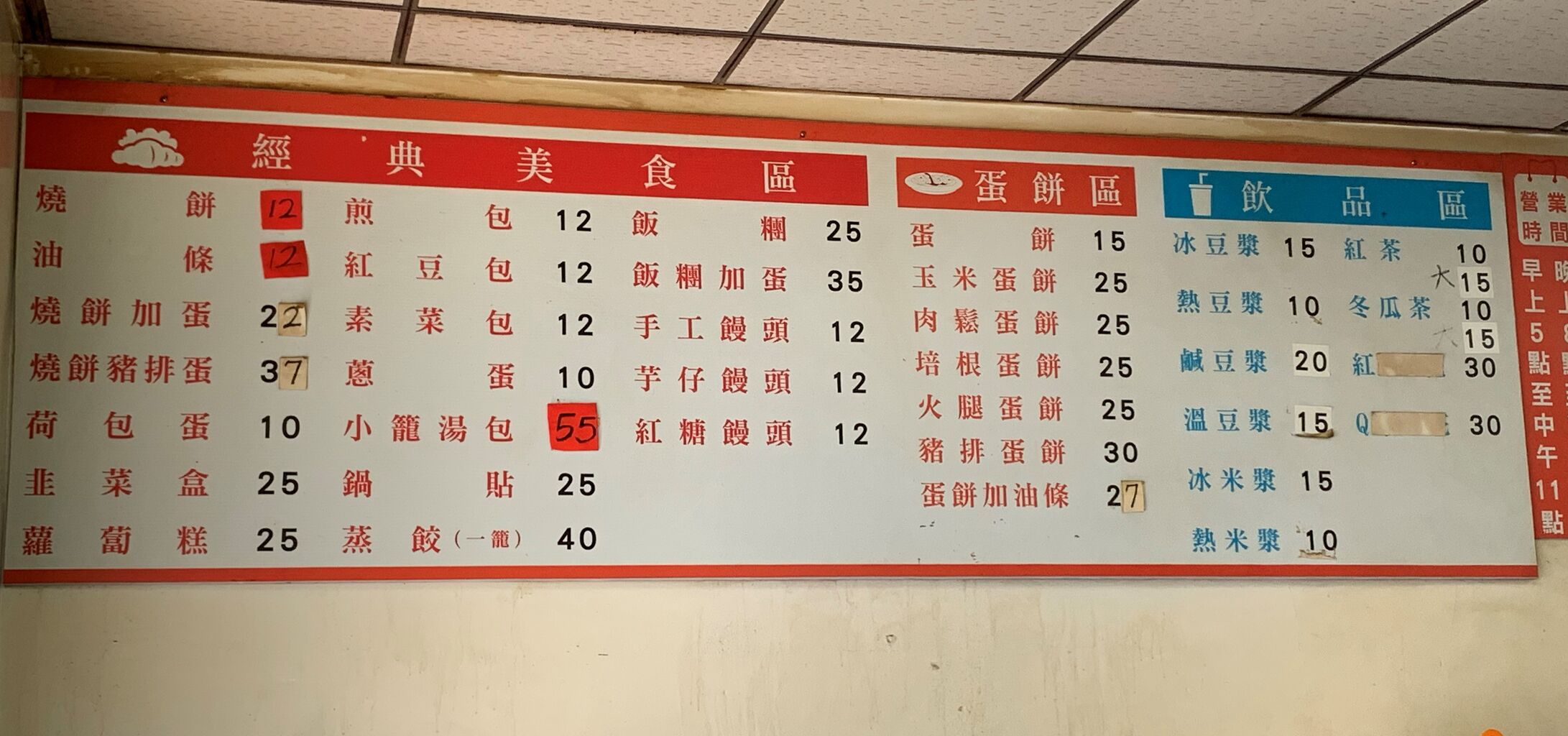 ↑ メニューには台湾朝ご飯の定番が並んでいる